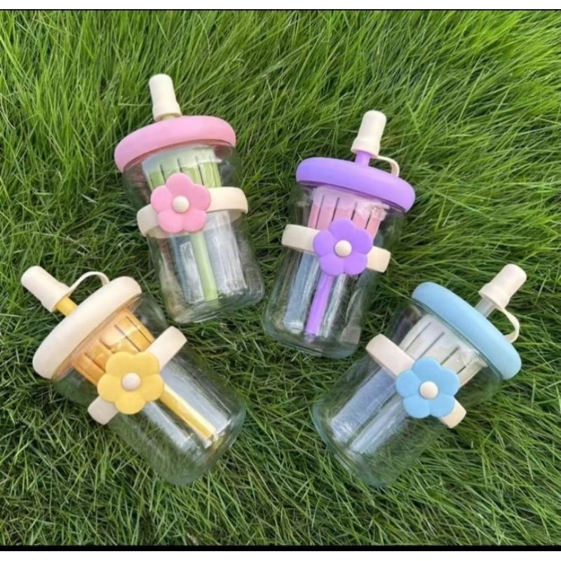 Botol Minum Kaca 500ml Sedotan Silikon Bunga Murah Gratis Ongkir Garansi Pengiriman