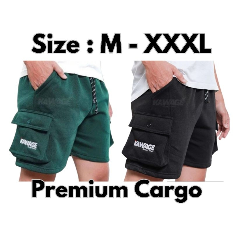 Kawage Celana Pendek Cargo Pria Distro DEWASA Bahan Fleece Adem Murah Hijau Botol