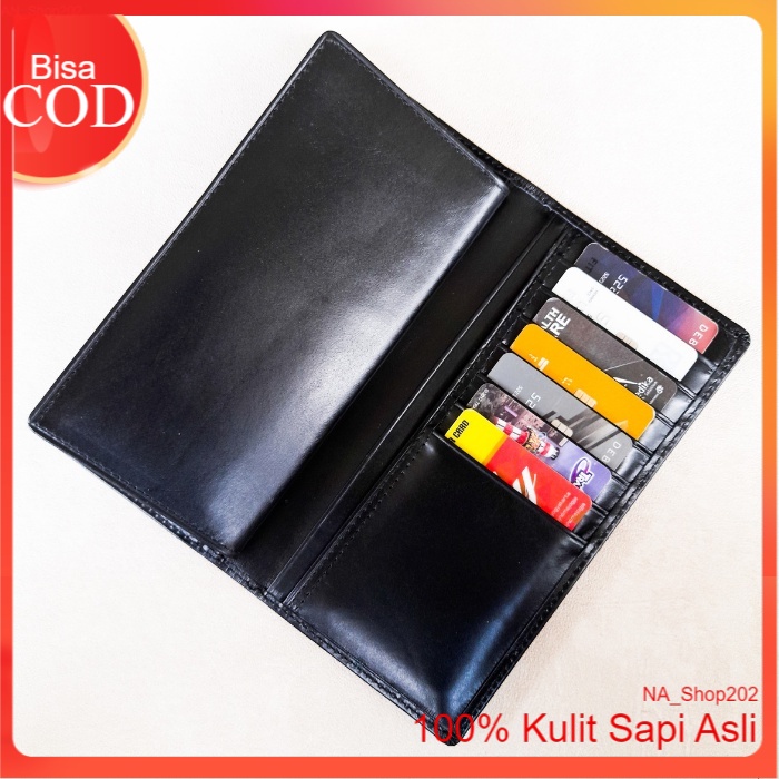 NA_Shop202 Dompet Kulit Panjang Pria Wanita Bahan Kulit Sapi Pull Up Dengan Sisipan Tengan