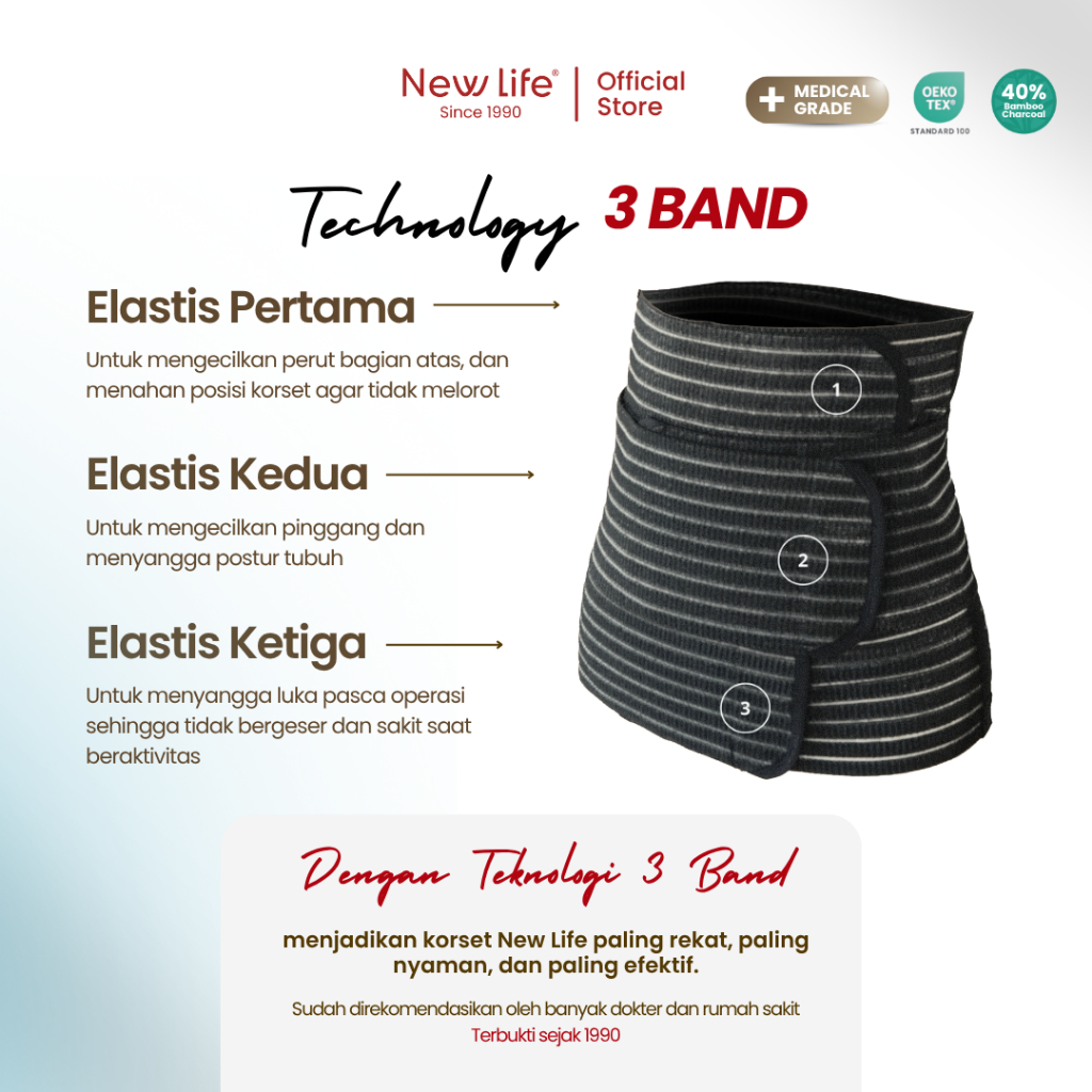 New Life 3 Band BAMBOO CHARCOAL Postpartum Corset Korset Pasca Melahirkan Caesar dan Normal