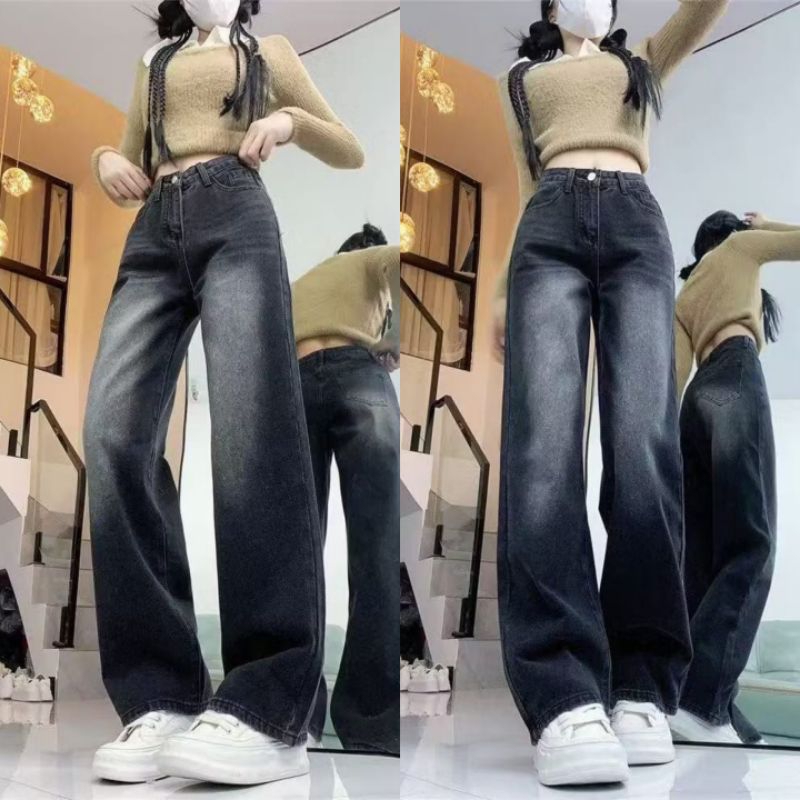 Celana Jeans Retro Wanita Celana Kulot Hightwaist Wanita Loose Terlaris