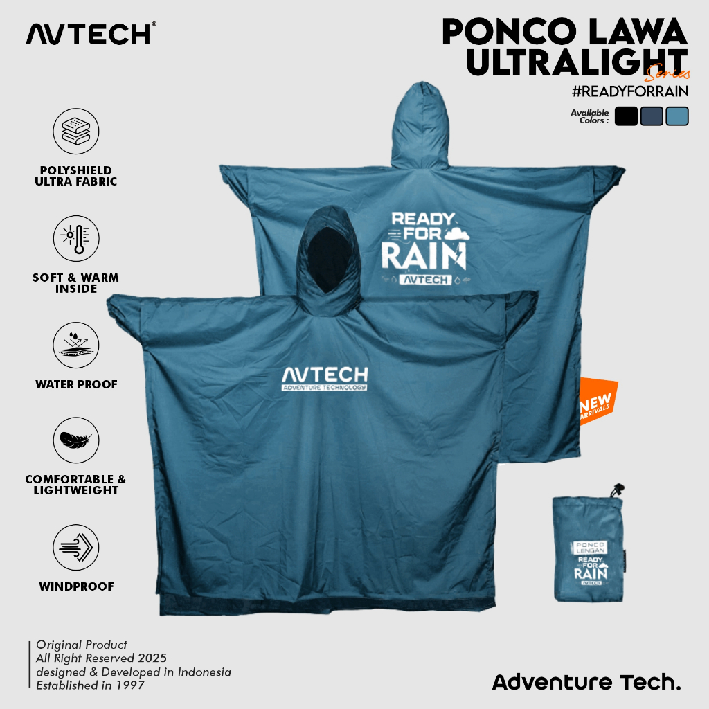 AVTECH - Jas Hujan Ponco Lengan Kelelawar Mantel Outdoor Gunung Waterproof Ultralight - LAWA