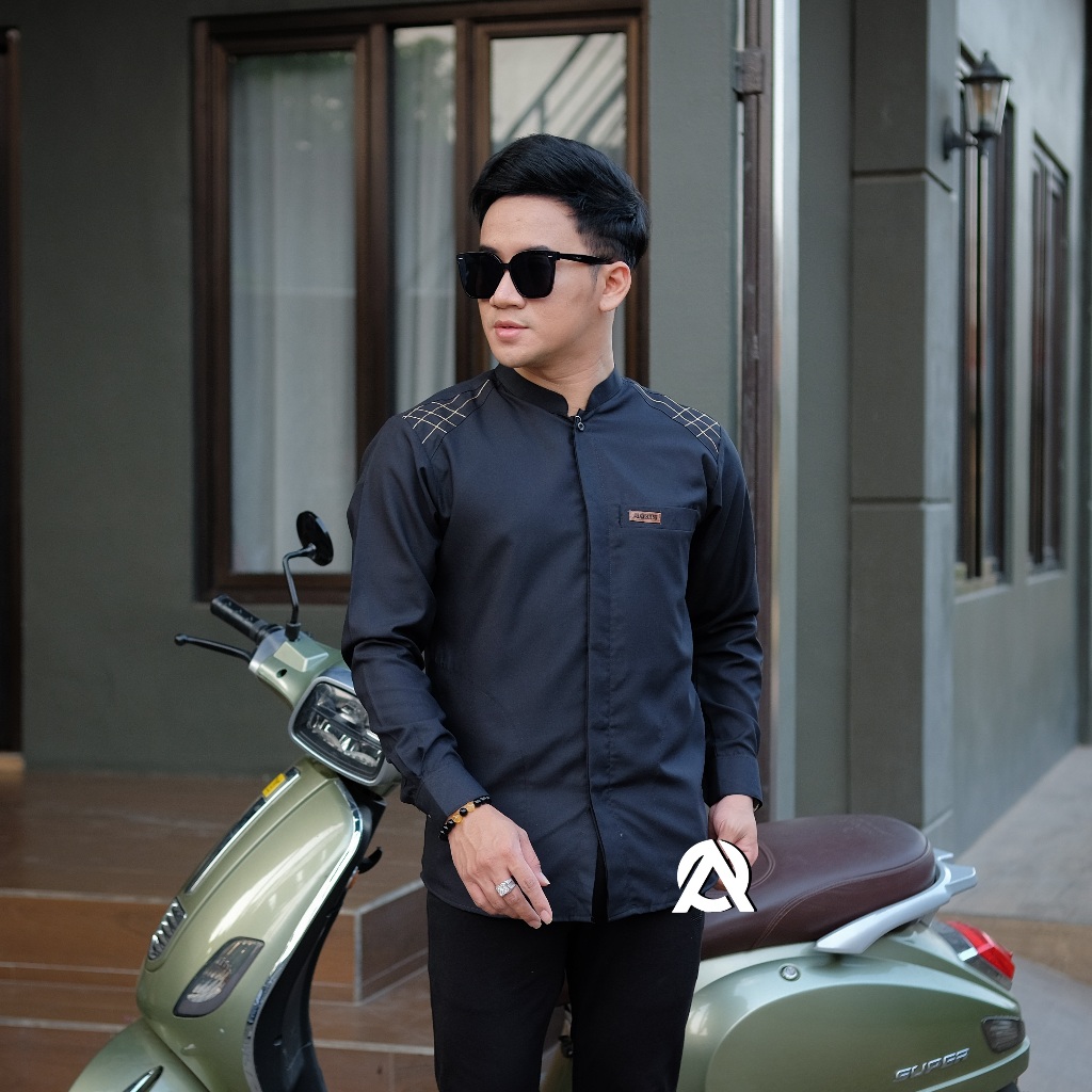 Baju Koko Pria - Baju Koko Dewasa Lengan Panjang Motif Keren Kombinasi Bahan Katun Toyobo Delux