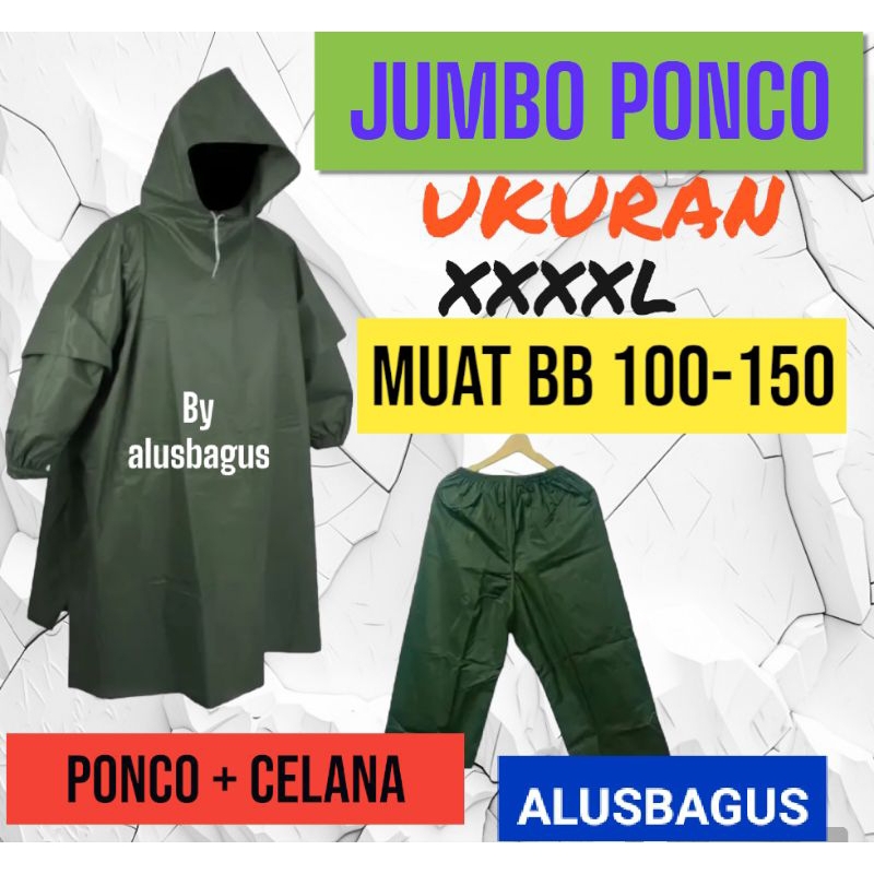 JAS HUJAN SUPER JUMBO PONCO + CELANA KELELAWAR PRIA WANITA XXXXL MUAT SAMPE BB 100-150 KG BAHAN PVC KARET ANTI REMBES