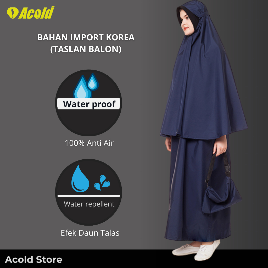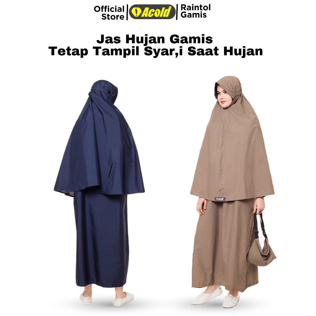 Jas hujan Muslimah Jashujan Acold Raintol Gamis Raincoat Ujan Wanita Taslan Daun Talas