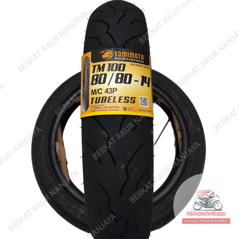 Ban motor Tomimoto TM100 ukuran 80 80 14, 90 80 14, 100 80 14 Tubeless Bonus Pentil Untuk Vario Mio Beat