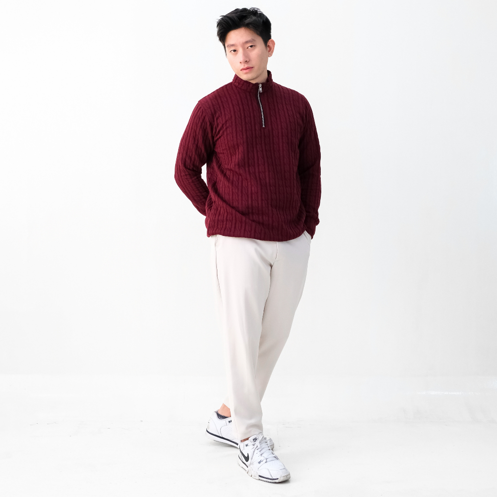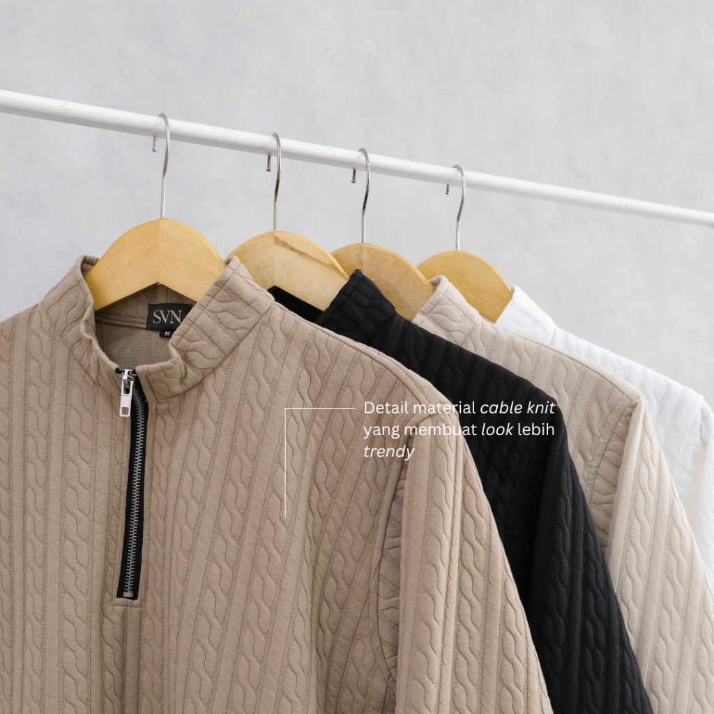 SANVANINA Cable Upper Zip Knit Sweater | Jaket Rajut Lengan Panjang Pria | Atasan Sweatshirt Pria