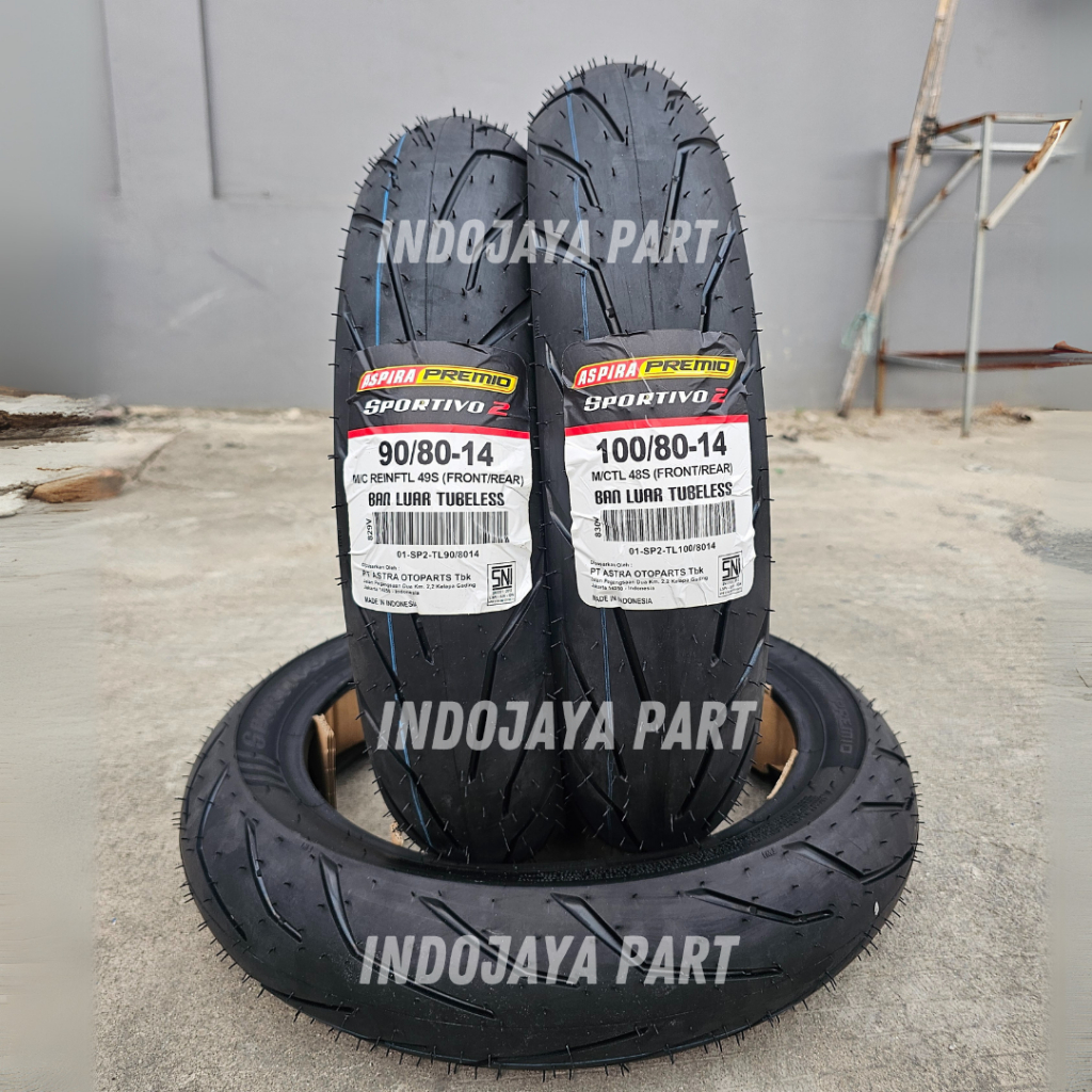HARGA MURAH SEPASANG BAN LUAR ASPIRA PREMIO SPORTIVO 2 9080-14 & 10080-14 BAN LUAR TUBELESS PREMIO