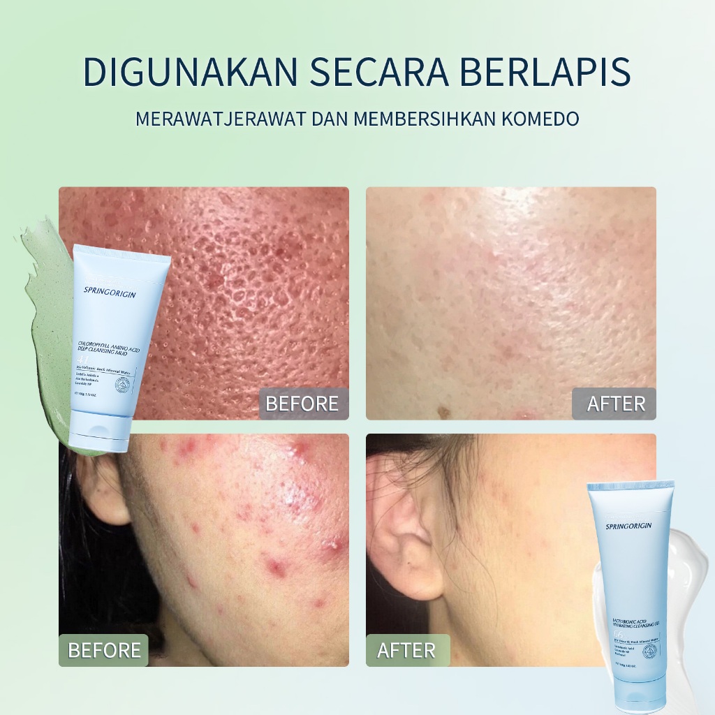 [Beli 1 Gratis 1] SPRINGORIGIN Lactobionic d Jerawat Gel Cleanser 100g + Chlorophyll Amino d Deep Cleansing Mud 100g