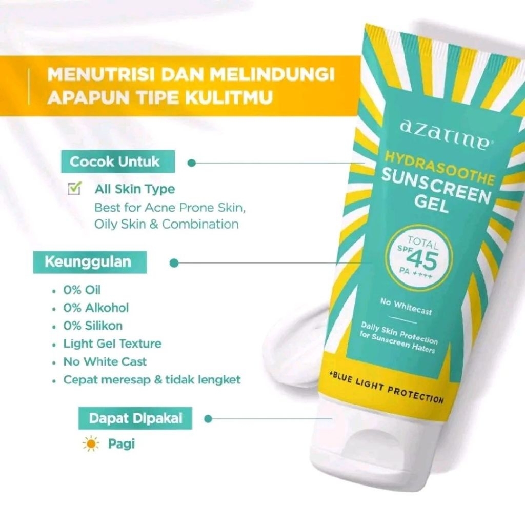 Azarine Hydrasoothe Sunscreen Gel SPF 45 PA++++ 30/50/110ml - Daily Protection No Whitecast - Sunscreen - Tabir Surya