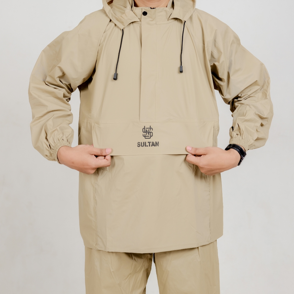 SULTAN Jas Hujan Kanguru Pria Wanita Setelan Baju + Celana Dewasa Cream