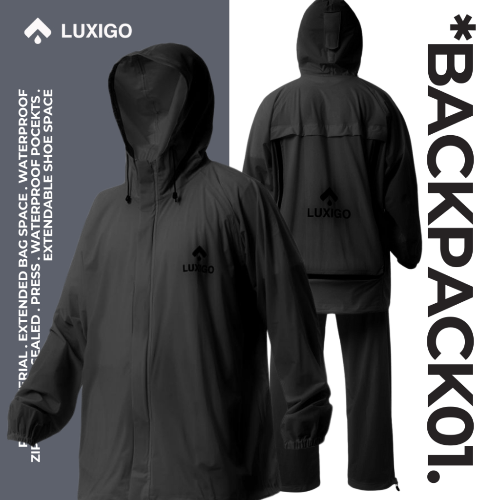 LUXIGO Jas Hujan Ransel Turtle Pack Setelan Dewasa Pria Wanita Mantel Jas Hujan Backpack - HITAM