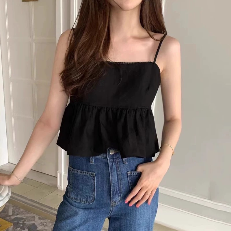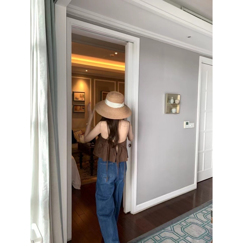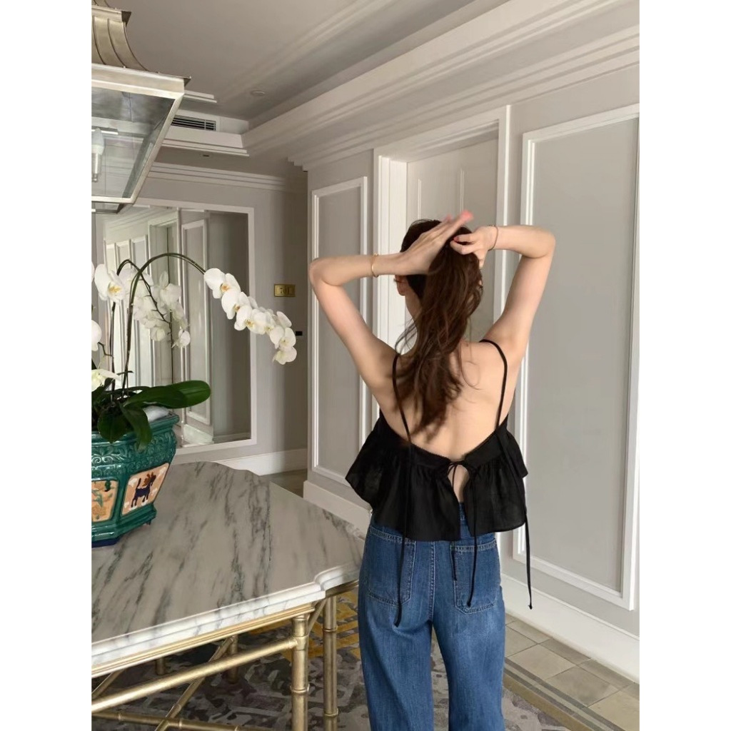 Summer Linen Backless Top Tanktop Atasan Wanita Korea Style Murah Gratis Ongkir