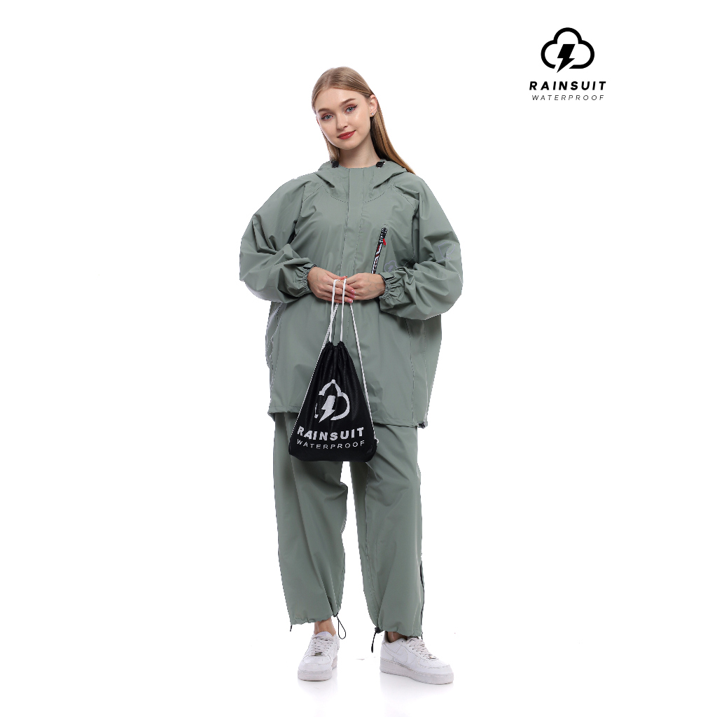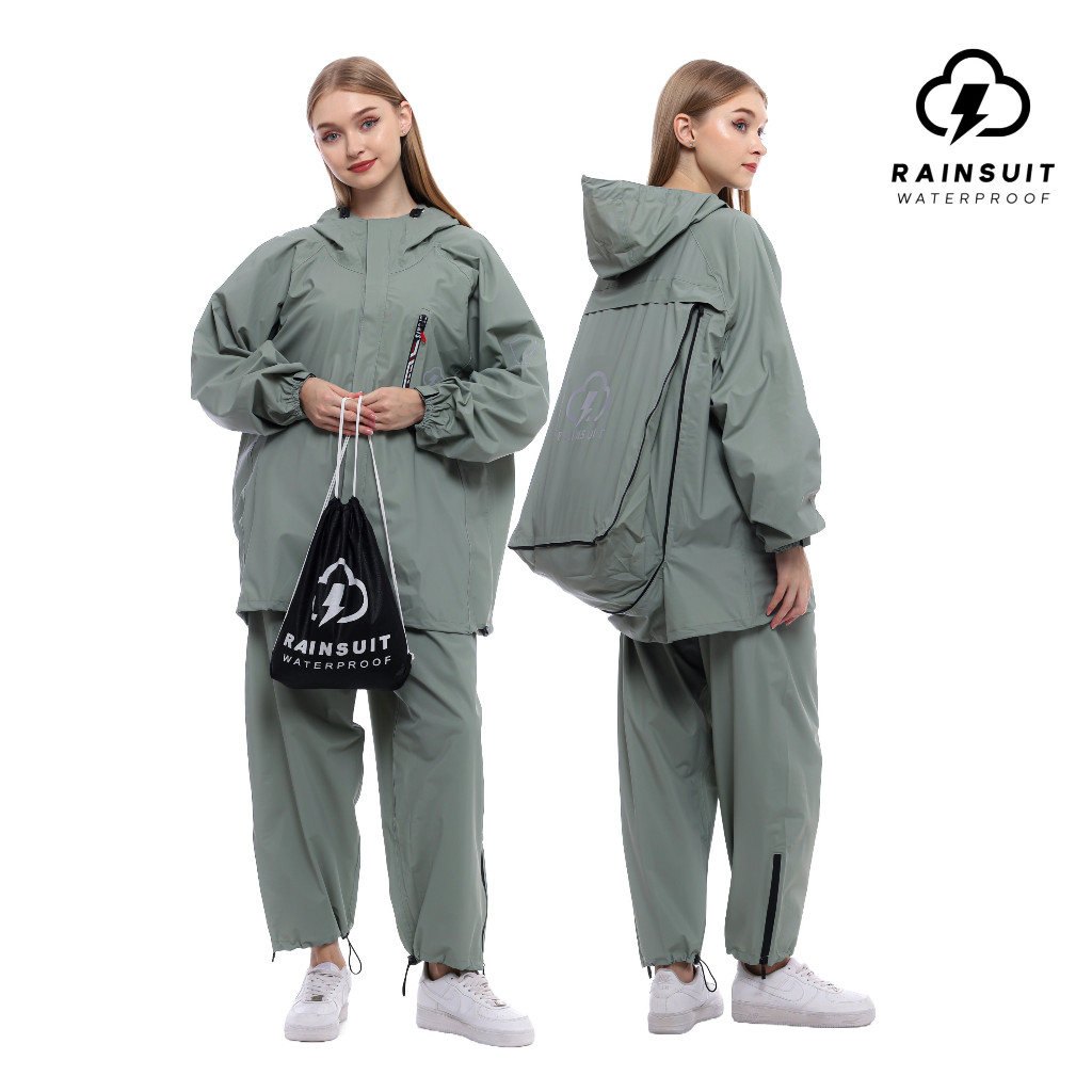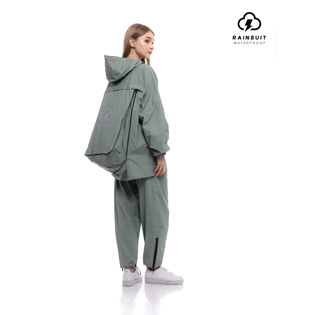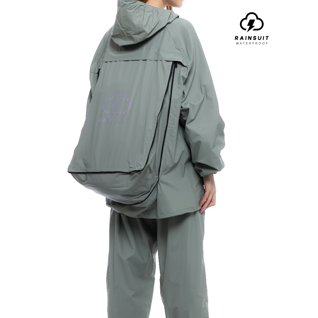 RAINSUIT Jas Hujan Raincoat Backpack Ransel Outdoor Setelan Dewasa Pria Wanita Bahan PVC Warna Sage