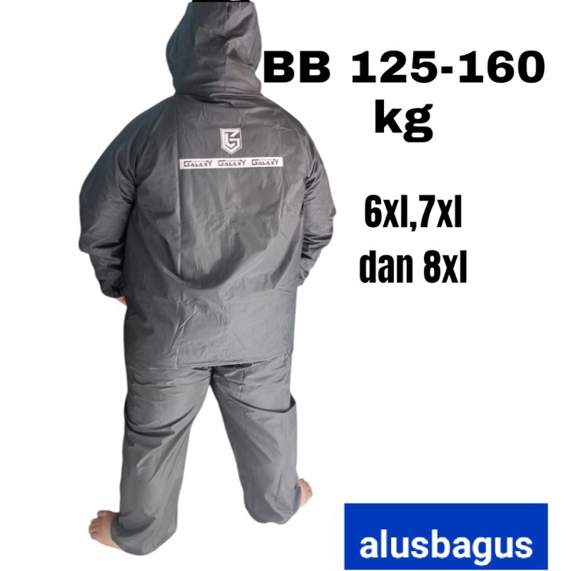 Jas Hujan Jumbo Big Size Mantel Setelan Celana Muat BB 90-160 Kg Pria Wanita Anti Rembes