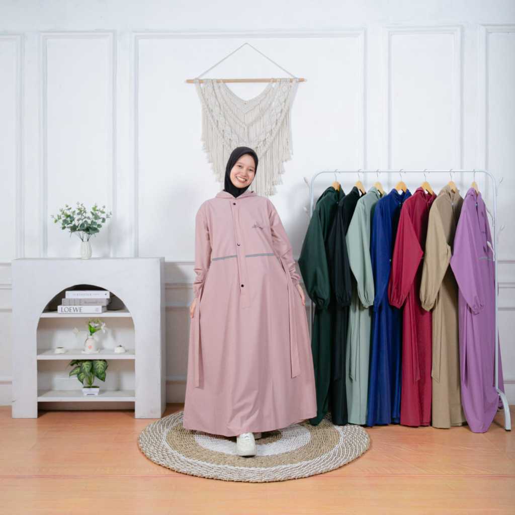 Jas Hujan Gamis Syari Wanita Muslimah Jumbo Bahan PVC Karet Premium Elastis Tebal Anti Rembes