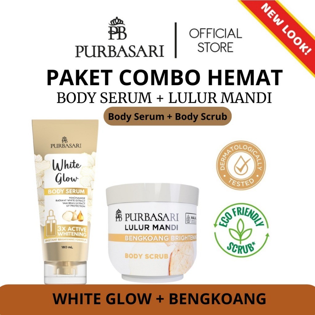 QEILA - Paket Hemat Purbasari Body serum White Glow 180 ml + Lulur Mandi Body Scrub 100gr & 200 gr (Sakura, Putih, Bengkoang)