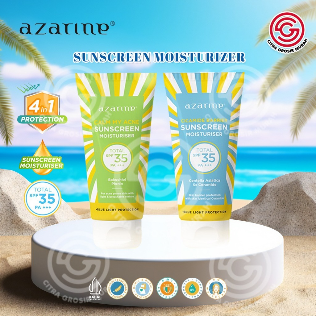 AZARINE Sunscreen Moisturiser Cicamide Barrier | Calm My Acne SPF 35 PA++ 40mL || Sunscreen Wajah Jerawat Skin Barrier || Tabir Surya Azarine
