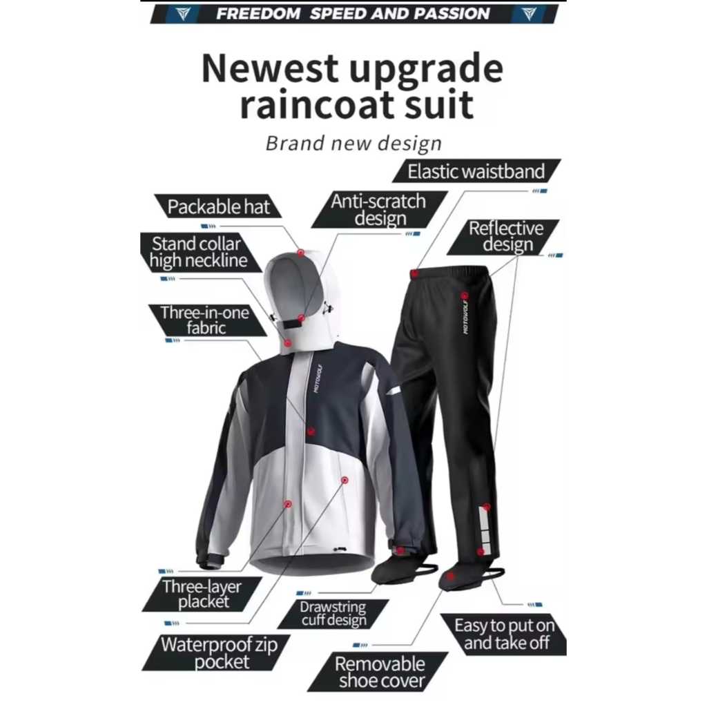 Jas Hujan 3 Layer 10000mm H2O MOTOWOLF MDL0405 Jacket Traveler Waterproof