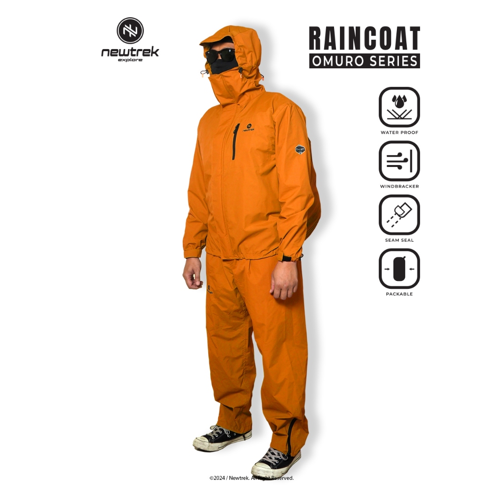 Newtrek Raincoat Gorpcore Omuro Series Jas Ujan Taslan Waterproof - Jas Ujan Setelan Orange
