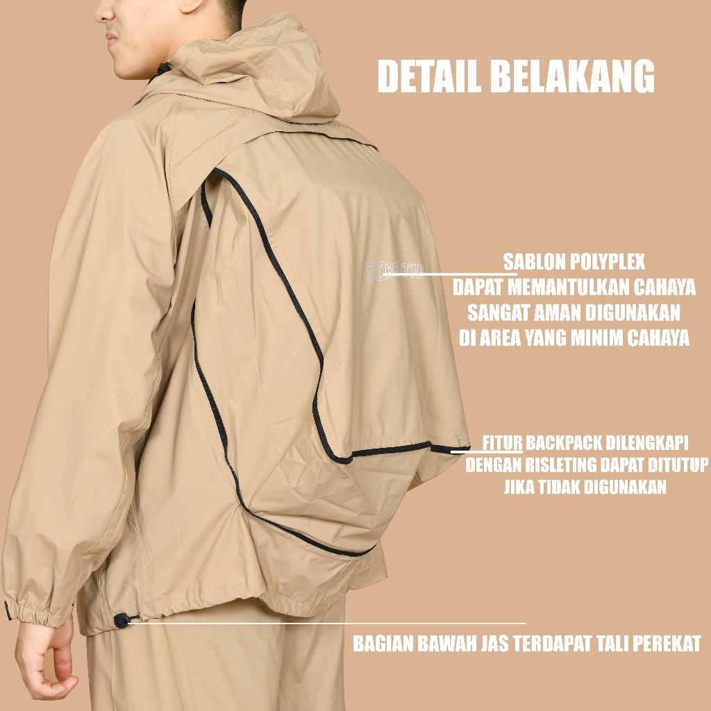 Kevatie Jas Hujan Backpack Series Cream-Jas hujan ransel kevatie Pria Wanita Bahan PVC Jas hujan Tas Belakang