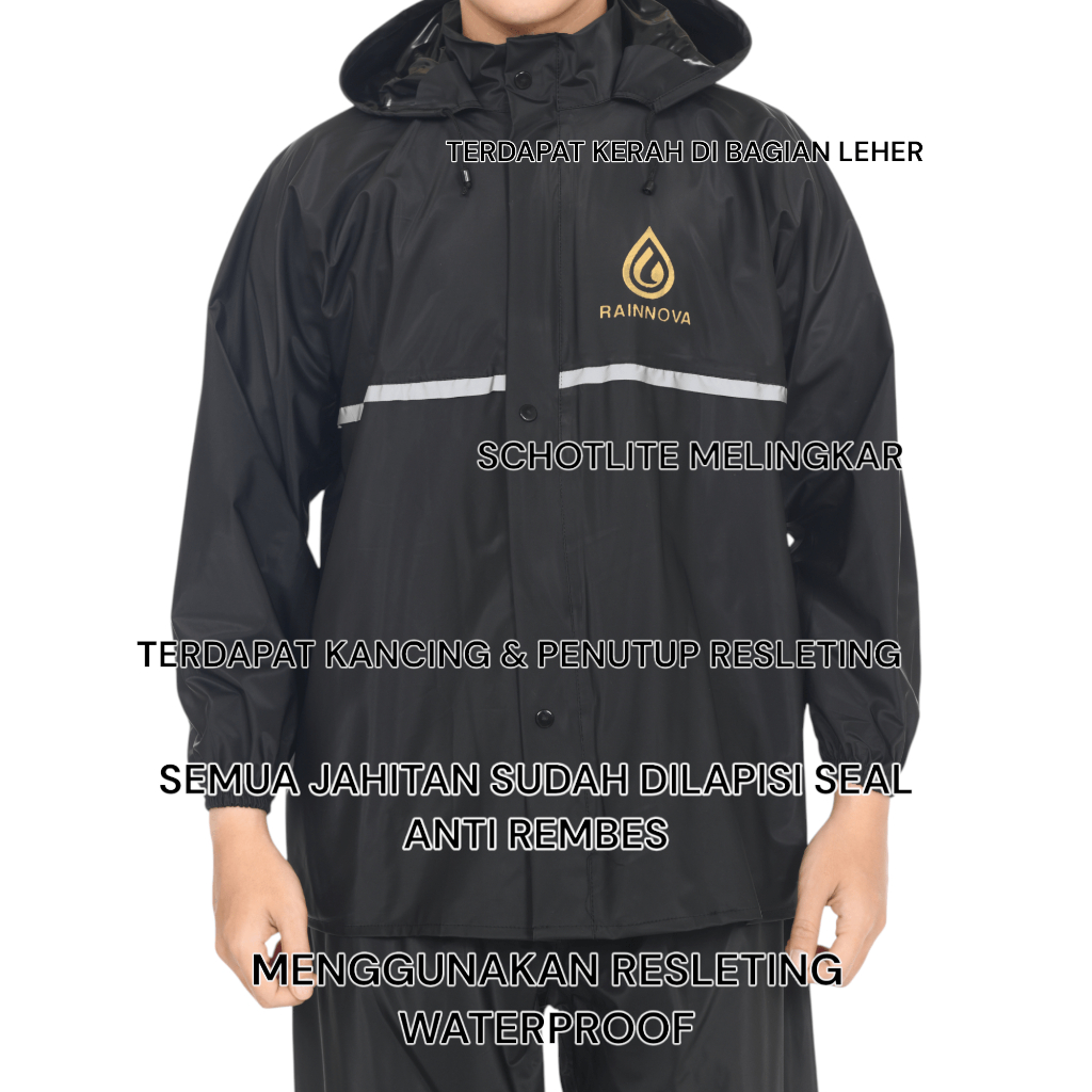 JAS HUJAN SETELAN RAINNOVA FULL PRESS SEALER ORIGINAL PRIA WANITA BAHAN LENTUR TEBAL ANTI REMBES
