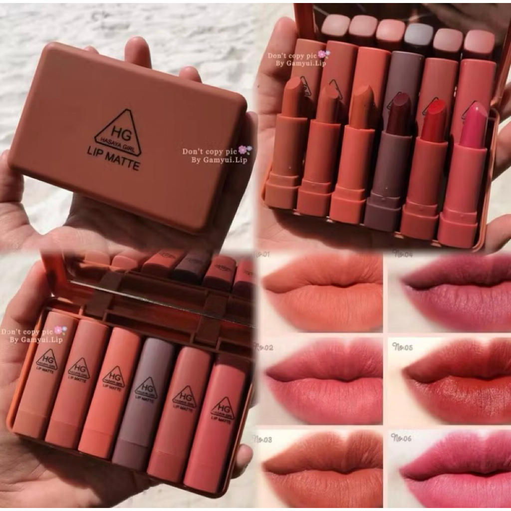 (6PCS) Set Lipstick isi 6 Mini Nude Hasaya Girl Mini Matte Lipstick Series (Dapat 1 set + kaca