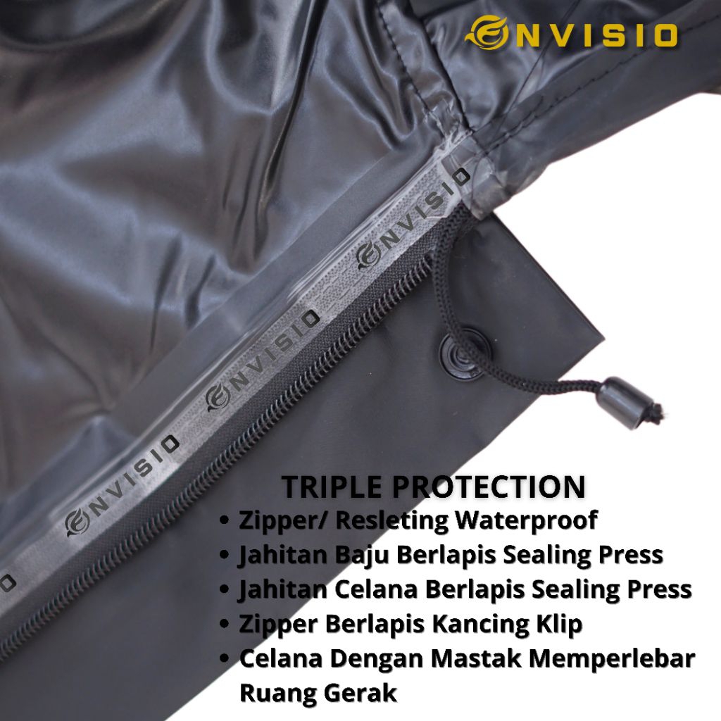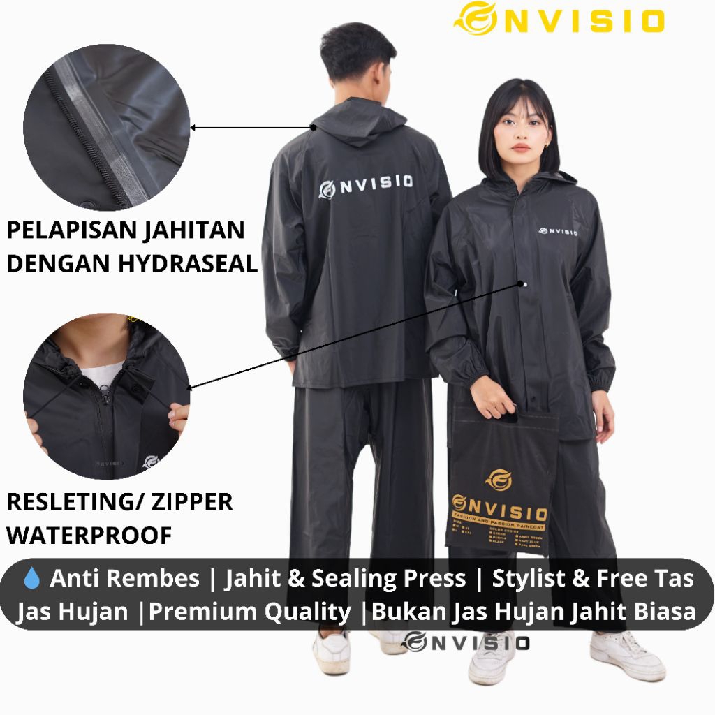 Jas Hujan ENVISIO Premium Original – Full Sealing Press, Anti Rembes, Free Tas Jas Hujan Unisex