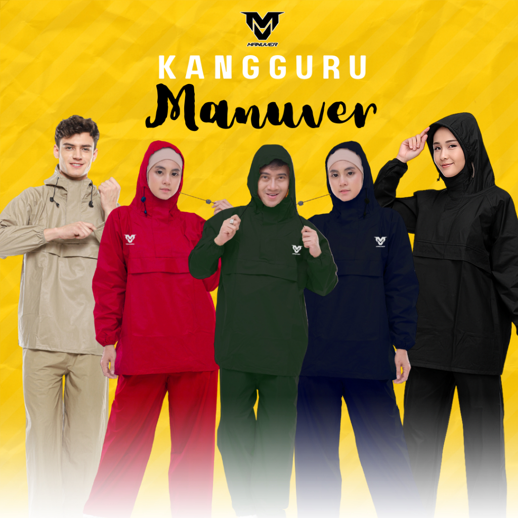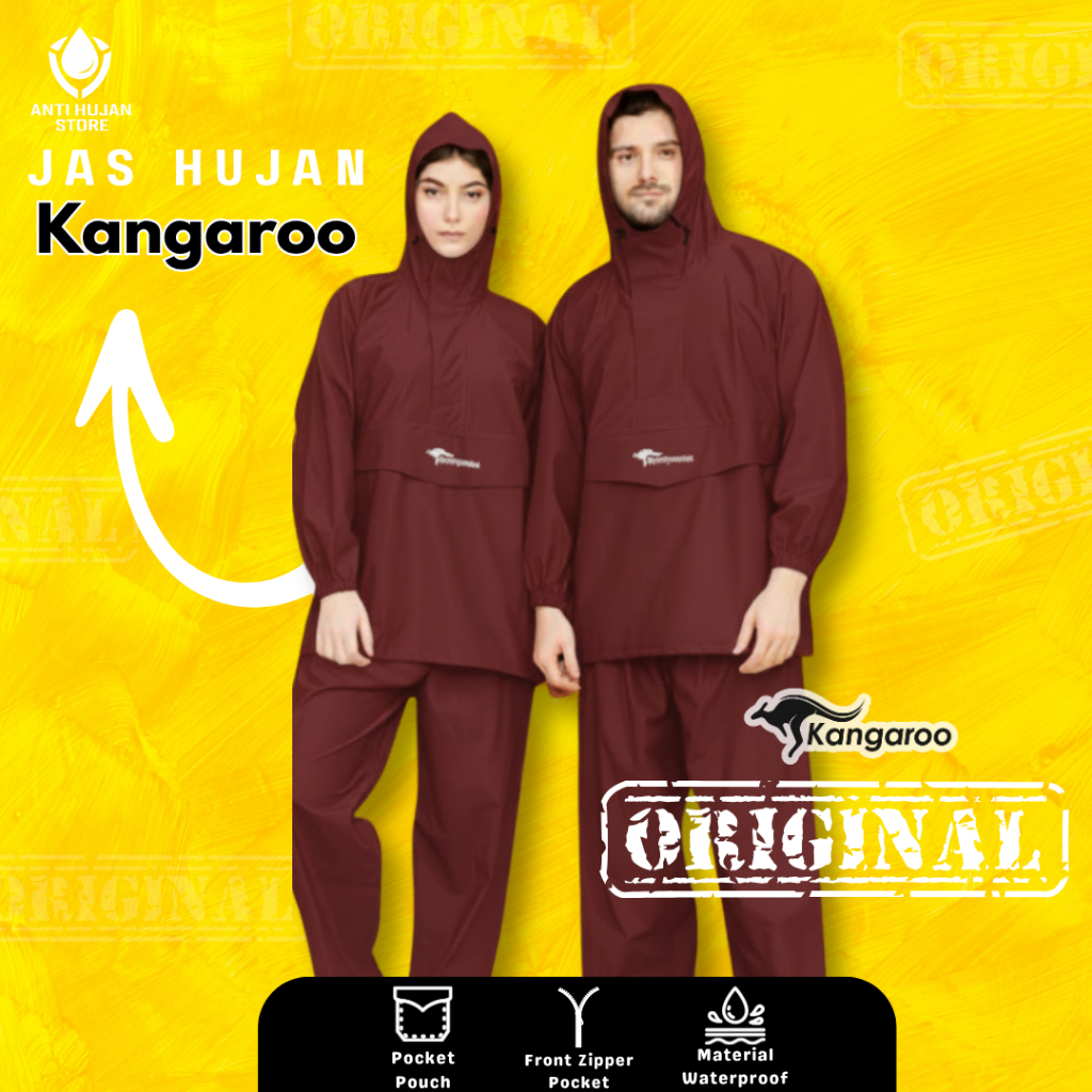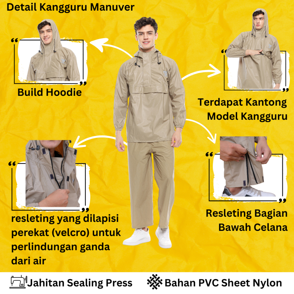 Jas Hujan Kangaroo Raincoat Taslan PVC Jas Hujan Mantel Saku Kangguru Anti Bocor Hujan Deras Lebat Tebal Saku Kanguru Pria Wanita