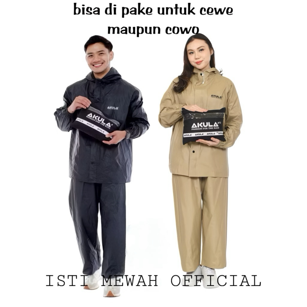 Jas Hujan AKULA Setelan Celana Pria Wanita Premium Bahan Tebal Kuat Elastis ANTI REMBES Raincoat Mantel Hujan Pria Wanita