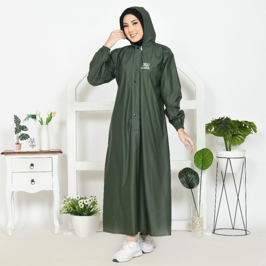 Jas Hujan Raincoat Wanita, Gamis Syat'i Berbahan PVC Tebal Kuat Lentur Anti Rembes Waterproof