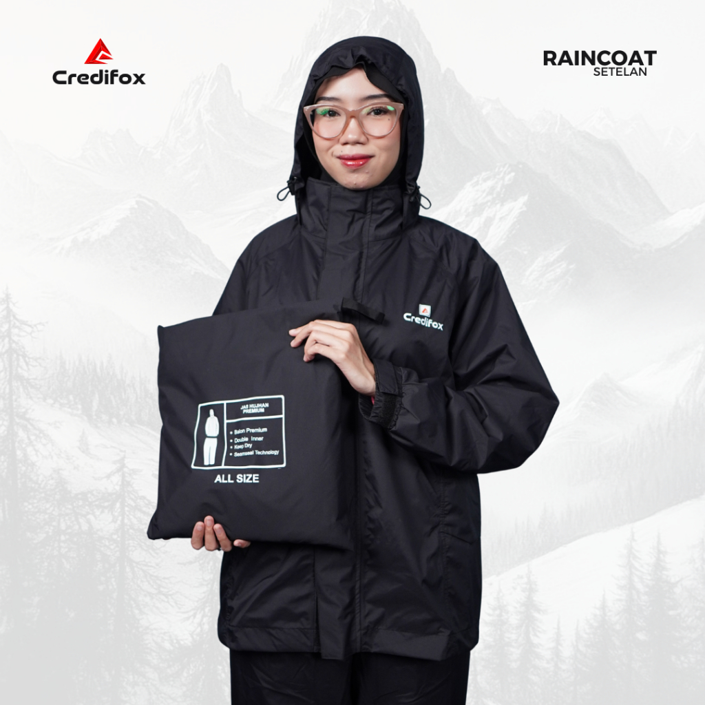 CREDIFOX Raincoat Setelan Bahan Taslan Balon Latex Thunder Rain Series Full Jahitan Seal - Jas Hujan Outdoor - Jas Ujan Waterproof