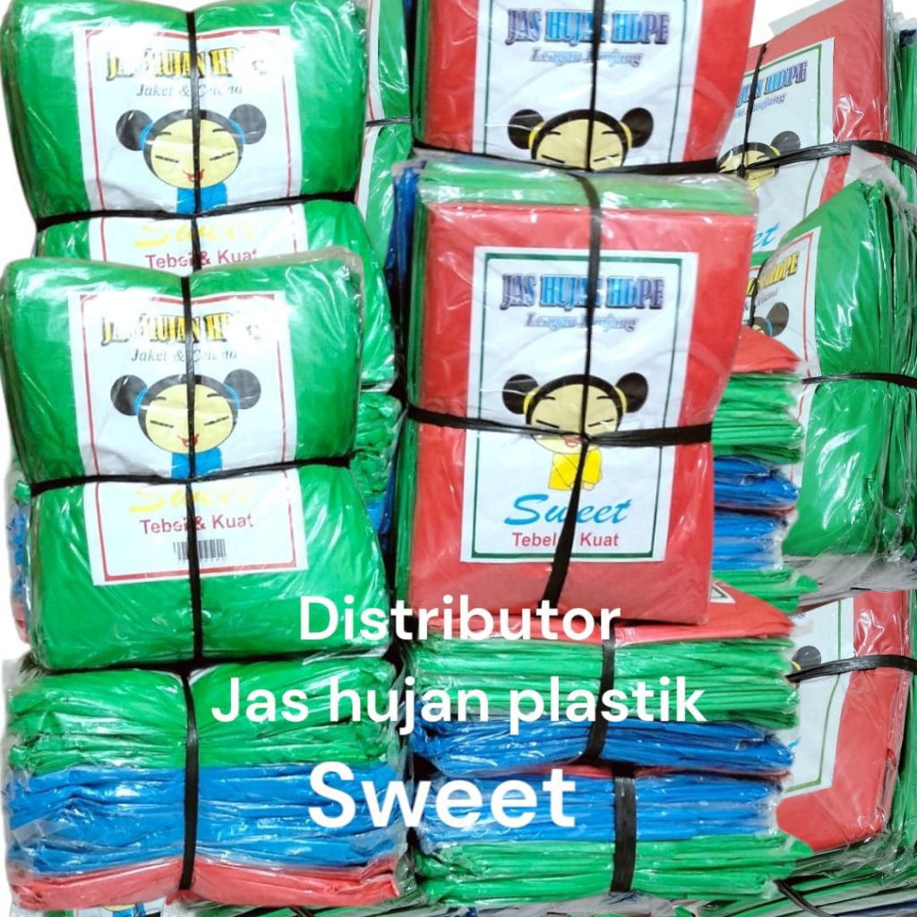 xenna_distro grosir 12 pcs) jas hujan plastik HDPE stelan dan Ponco tebal dan kuat