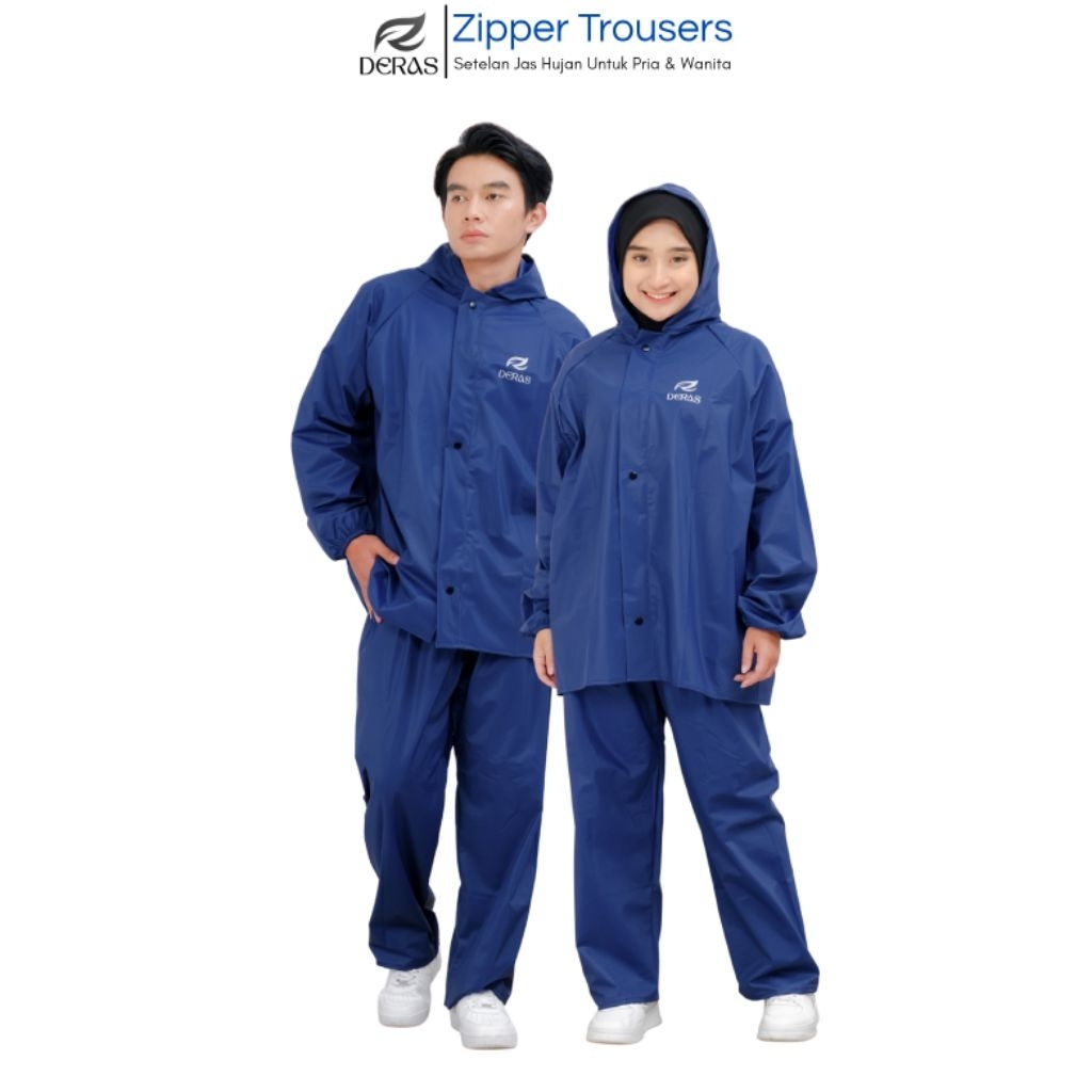 DERAS Jas Hujan, Mantel Dewasa Pria Wanita Tebal Elastis Bahan PVC Super Premium Awet dan Tahan Lama