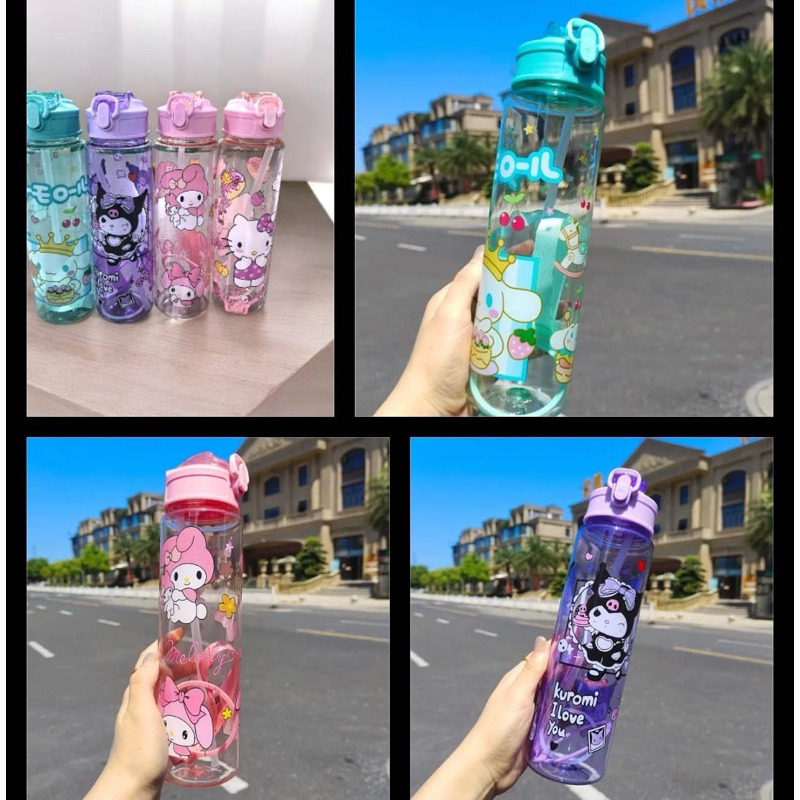 BOTOL MINUM 900 ml Bening Plastik BPA Free Karakter Lucu Anak Perempuan ada Sedotan dan Tali Pegangan Murah Gratis Ongki