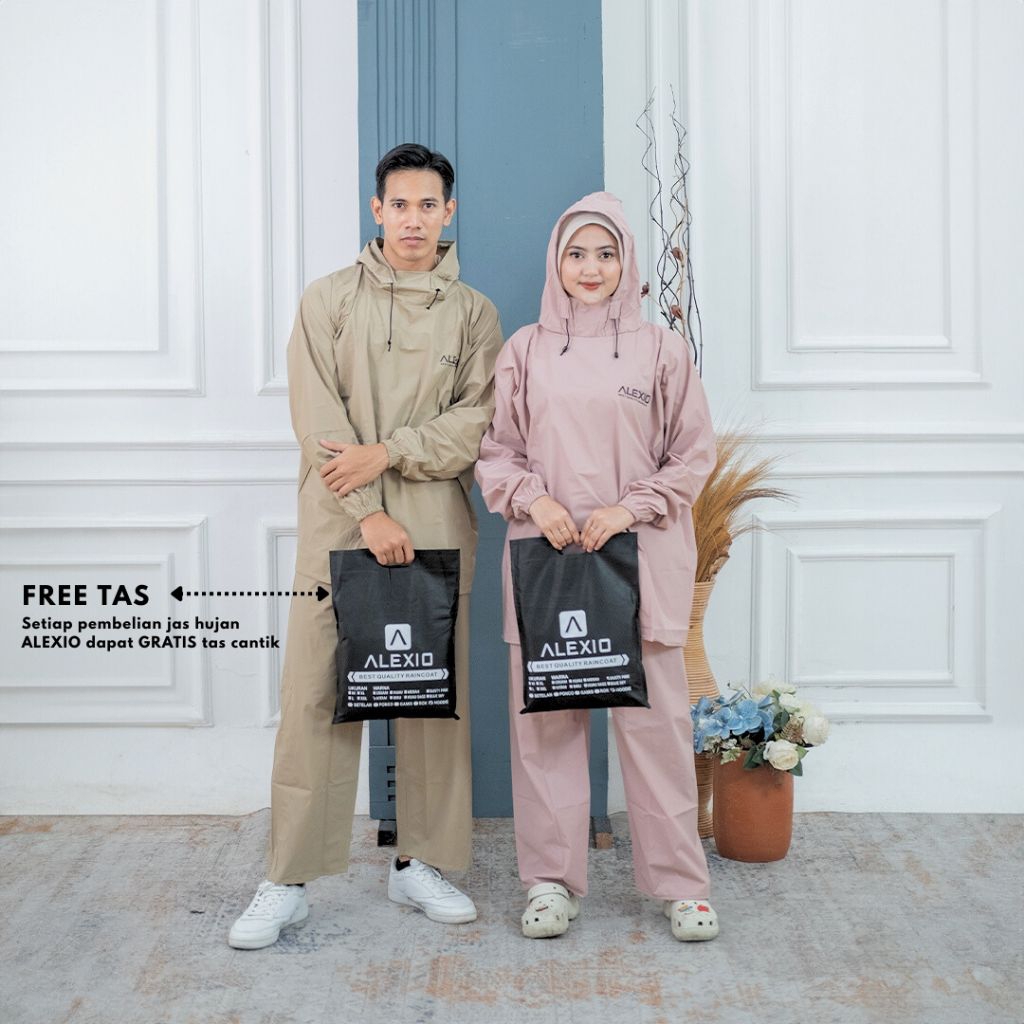 Jas Hujan Hoodie Pria Wanita Bahan Tebal Kuat Elastis Anti Rembes BY ALEXIO