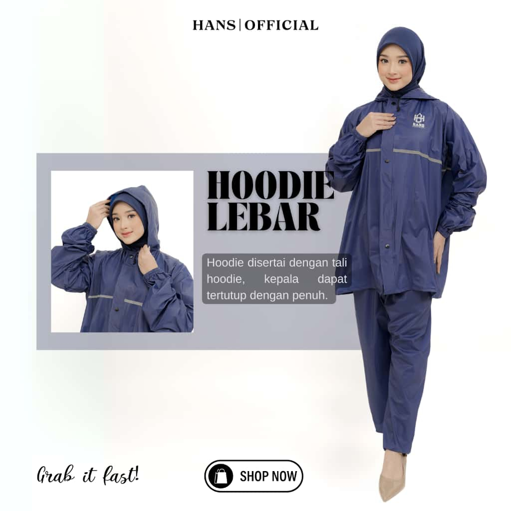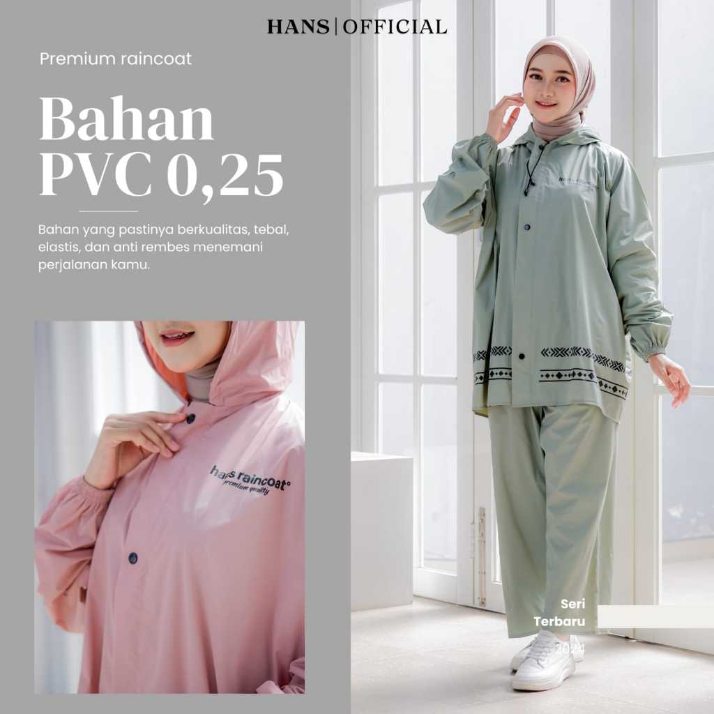 Jas Hujan Pria Wanita Setelan Jaket Celana Dewasa Bahan PVC 0.25 Tebal Elastis Anti Air HANS