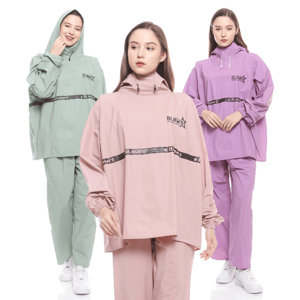 Jas Hujan Hoodie Terbaru Pria Wanita Bahan PVC 0,25 Tebal Elastis Anti Rembes Original Bi.Mars