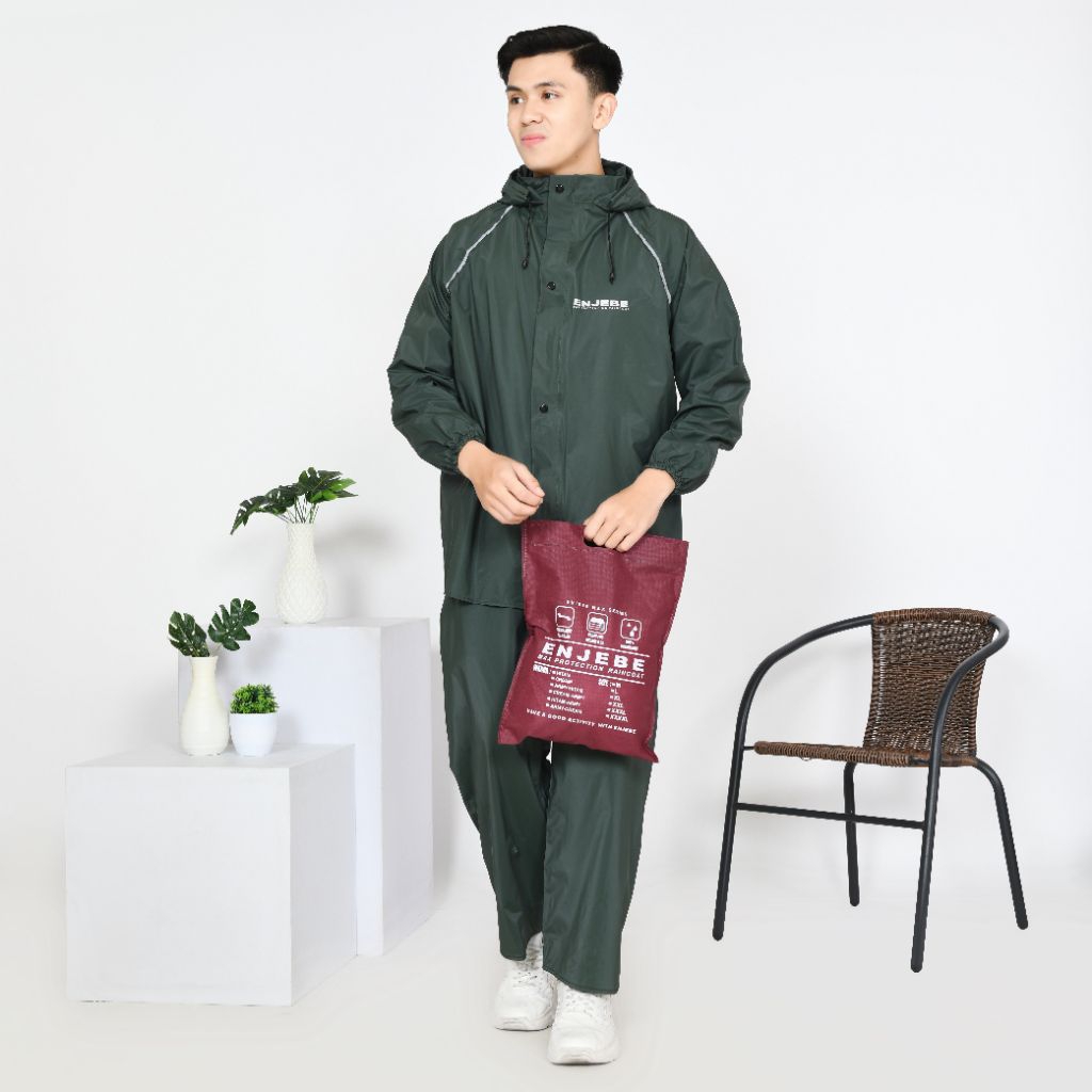 ENJEBE ORIGINAL NEW PREMIUM FULL SEAL PRES jas hujan anti rembes PVC karet lentur tebal elastis JAZ HUJAN pria wanita ( remaja, deawasa)