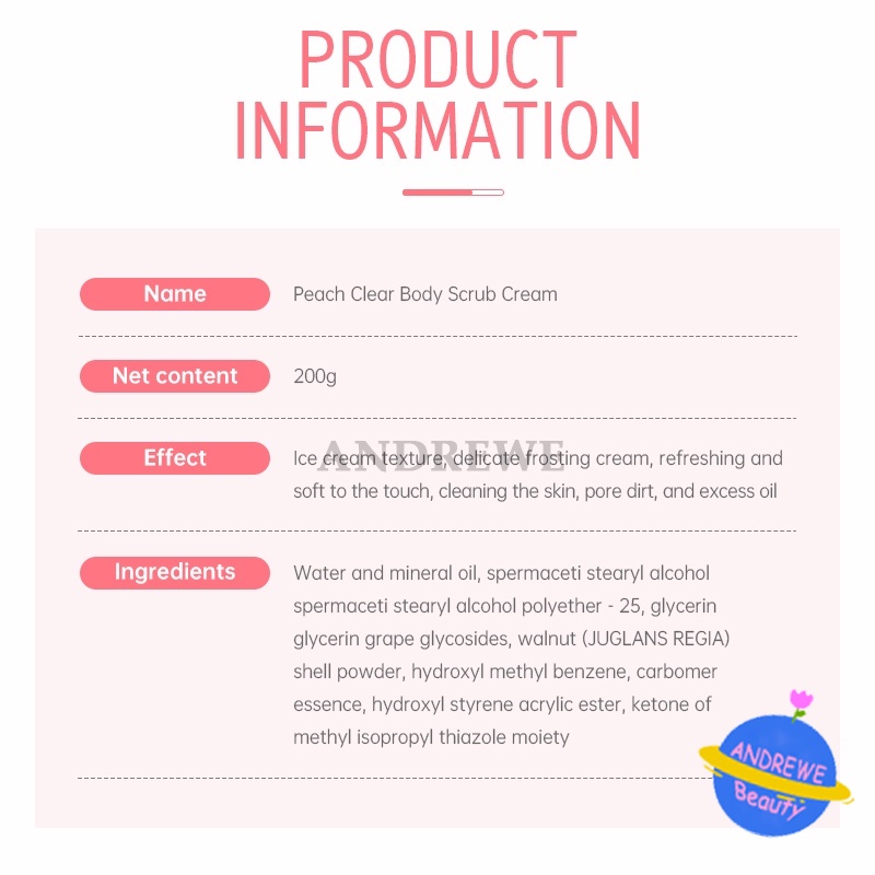 【AW】MEIDIAN Peach Cream Body Clear Body Scrub Ninamide Ice Cream 200 ML-