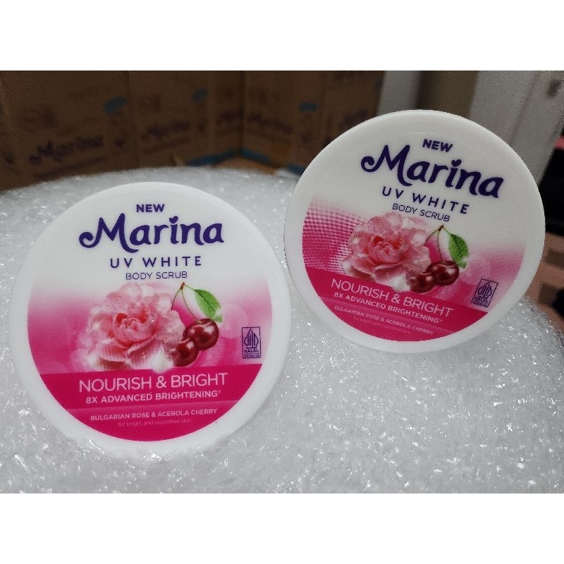 MARINA BUNDLING Body Scrub 185ml + Lotion Marina 185ml | Scrub Tubuh | Marina Lulur Mandi 8x active White