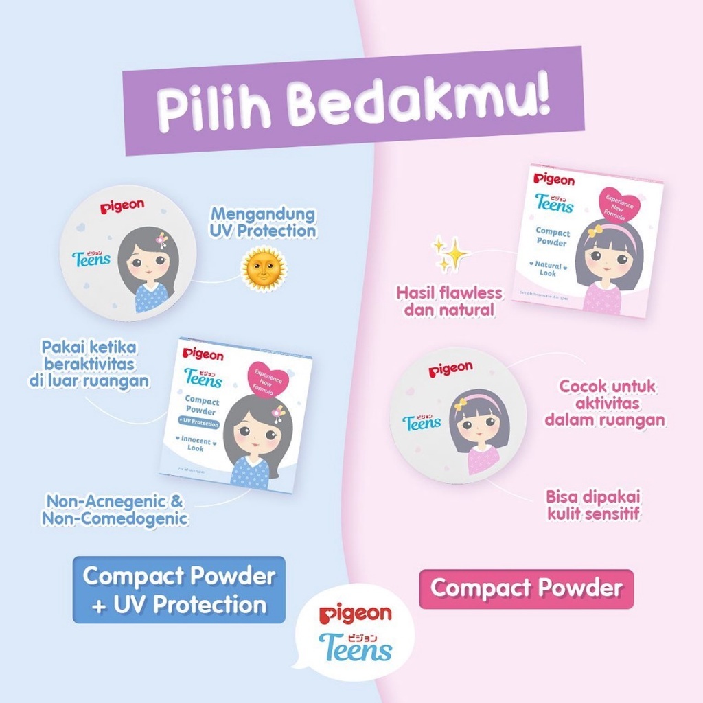 Pigeon Teens Bedak Compact Powder | Compact + UV Protection | Two Way Cake | Natural Innocent Look | Kosmetik Anak Remaja