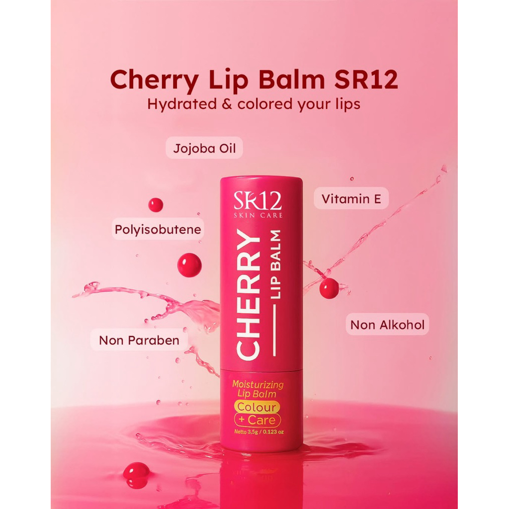 SR12 Lip Balm Cherry Stick Pelembab Bibir Melindungi Bibir Pink Alami Solusi Bibir Kering 3,5 gr
