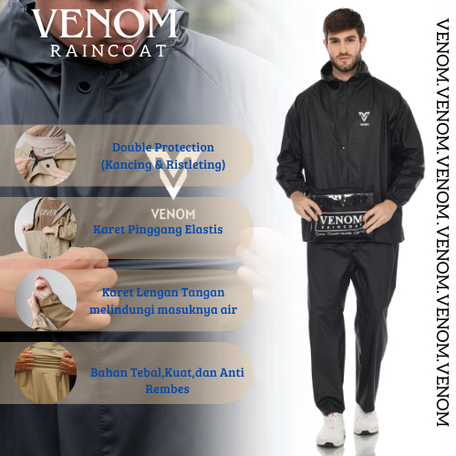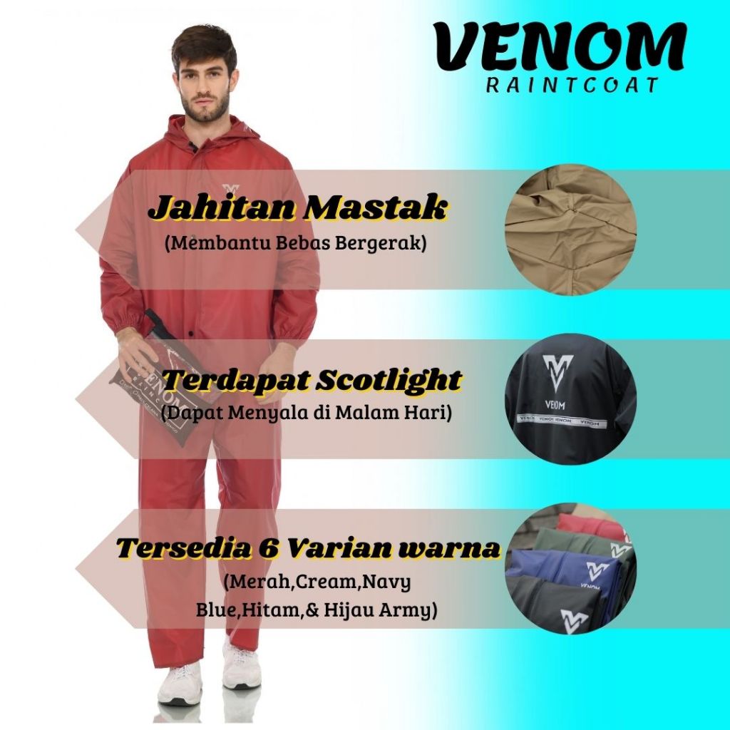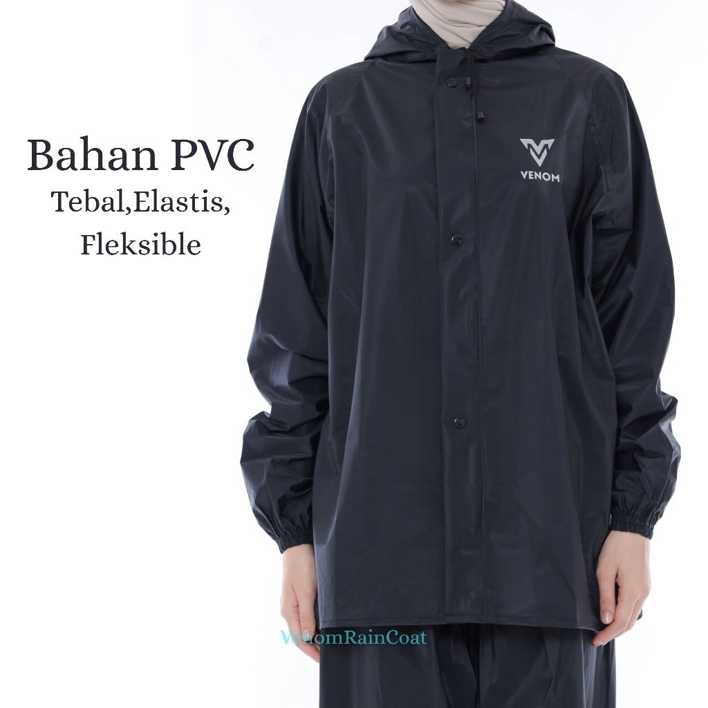 Jas Hujan Raincoat Anti Rembes Pria Wanita Bahan PCV Tebal Kuat Elastis By VENOM Original