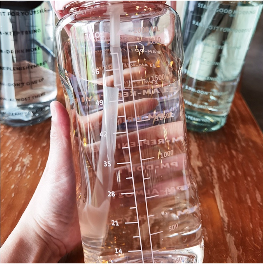 Botol minum Jumbo 2 LITER Motivasi Penanda waktu Tritan Quifit Handle BENING 2000ML - Botol Minum 2L TAKASIMURA STORE Mu