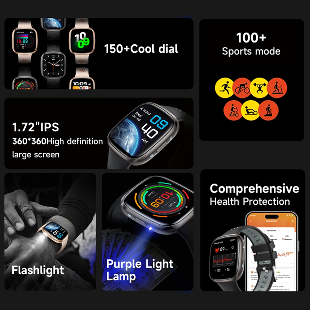 【Bisa ChatGPT】Official LDS Smartwatch HT31 Smart Watch 1.72 inch IPS Touch Screen 18 Days Battery Life Clear Calling IP6