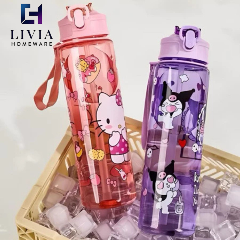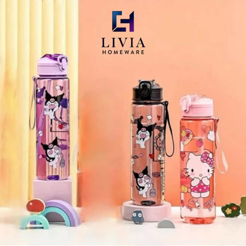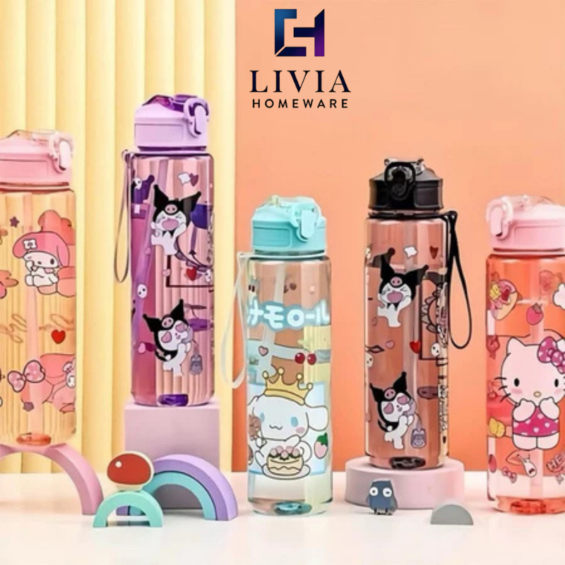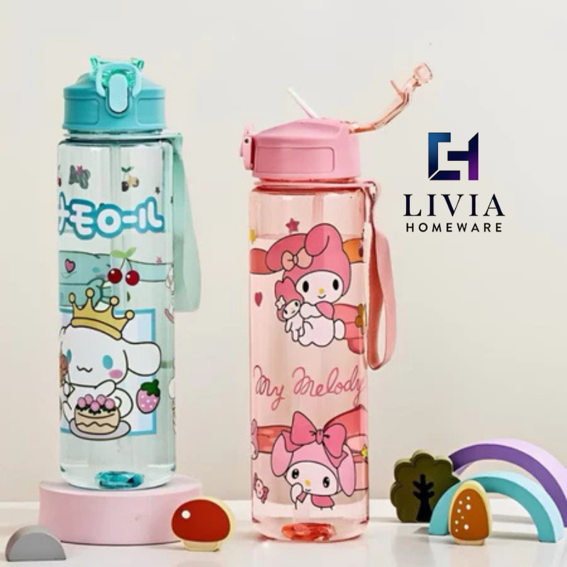 Botol Air Anak Sanrio + Sedotan BPA FREE Botol Minum Sanrio 900ML Bening KURUMI MELODY CINAMOROL Murah Gratis Ongkir Gar