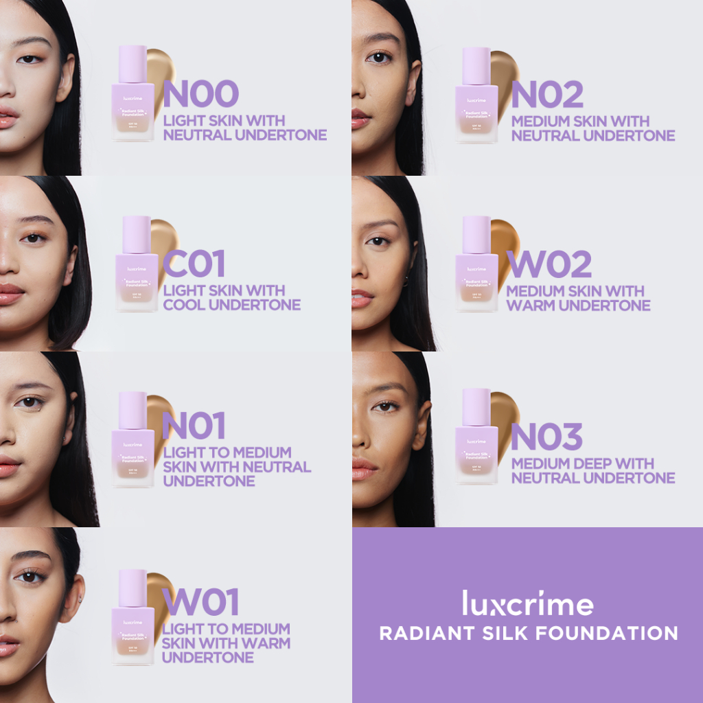 LUXCRIME - RADIANT SILK FOUNDATION SPF 50 PA+++ ( 30 g ) - Foundation Natural Radiant Finsih Calming & Soothing Cocok untuk Kulit Sensitive