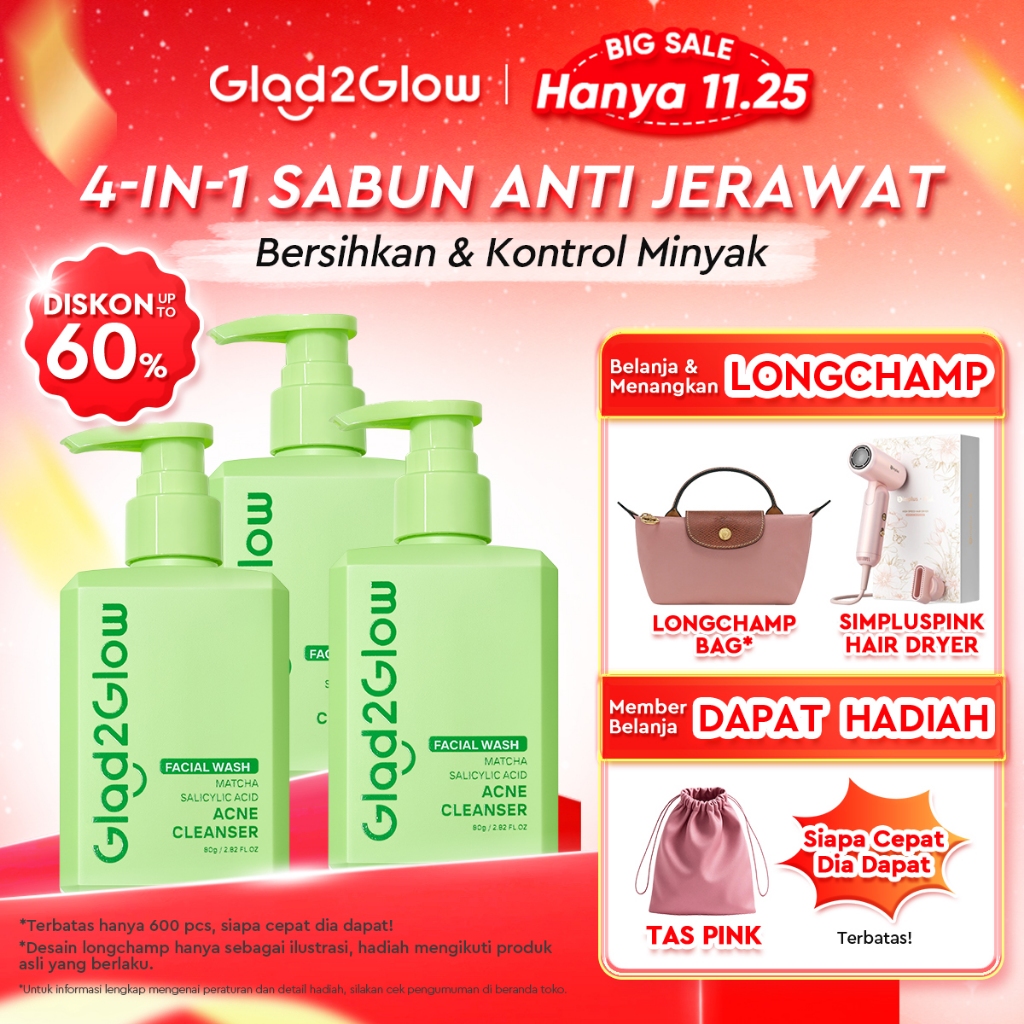 [New]Glad2Glow Matcha Salicylic d Acne Fal Cleanser 80ml Anti Jerawat Kontrol Minyak Face Wash Oily Acne Prone Skin Friendly sabun cuci muka g2g