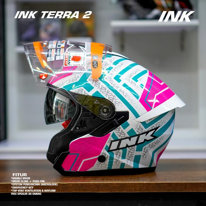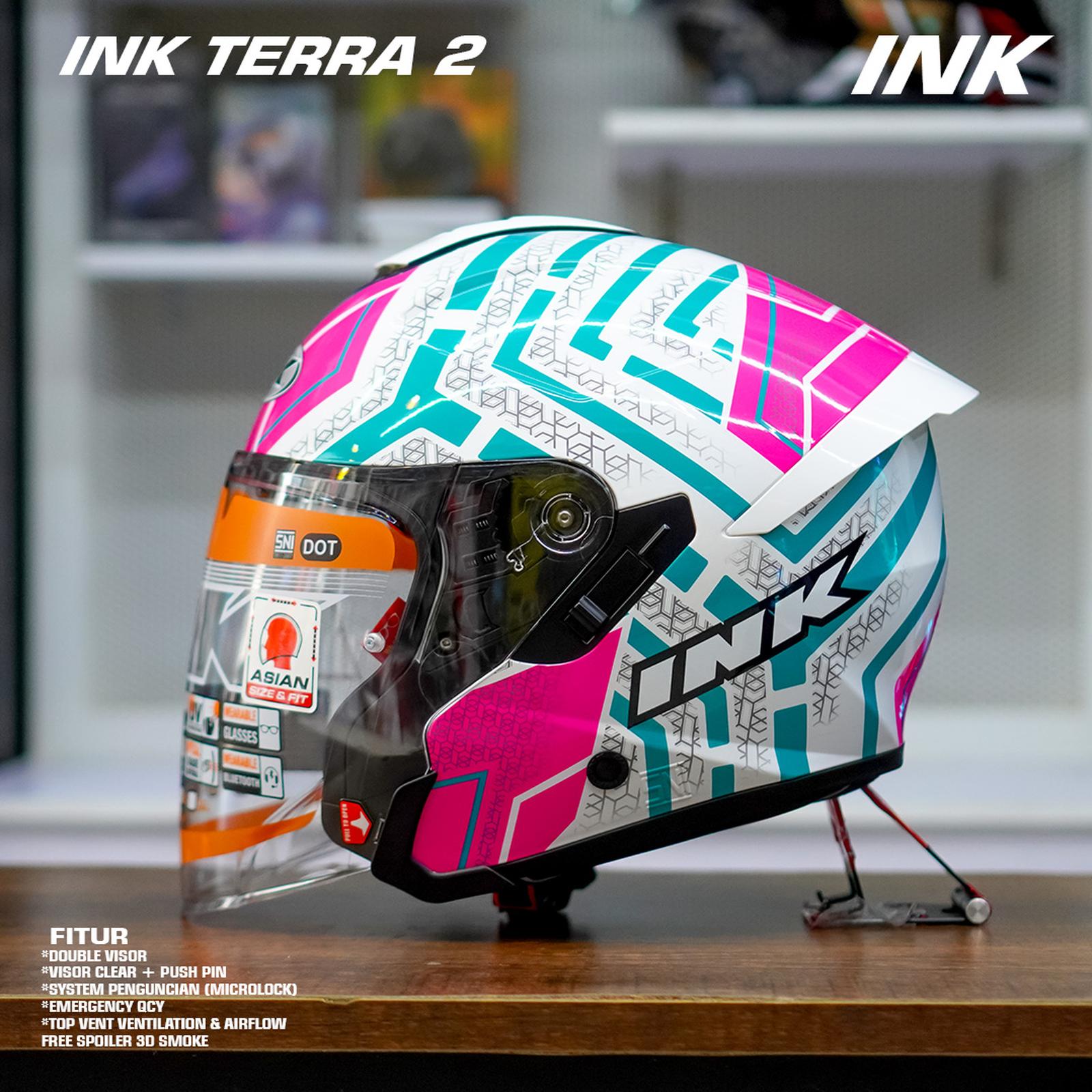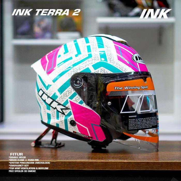 Helm INK TERRA 2 NEW MOTIF WHITE PINK FUSHIA - NINK TERRA2 MOTIF V2 - M